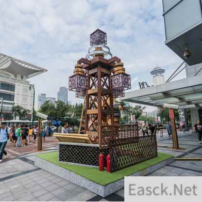 充满中国风的特斯拉电磁塔 都说“巧妇难为无米之炊”,不过建筑工人显然没有这样的烦恼。离开游戏后,建筑工人不再拥有圣水、金币等资源,但通过就地取材,加上自己过硬的建筑功力,成功变废为宝,将深受玩家喜爱的皮卡超人和特斯拉电磁塔搬到了上海。那么多普普通通的生活用品,经过建筑工人之手,居然有“化腐朽为神奇”的奇效,小编真是佩服至极,同时也为自己之前在游戏中忽视建筑工人的行为感到羞愧,原来他才是幕后的真正大BOSS!
