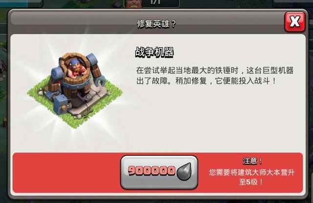 加农炮战车 第二大本营的新兵种都拥有者自己特殊的技能,并且有余兵营限制种类的情况下,更合理的兵种搭配是取得胜利的必要因素。 新英雄当然也少不,当第二大本营到达5级之后,可通过修复战争机器的方式,获得一个新的英雄单位。将它升级到5级时,可以解锁新的技能。