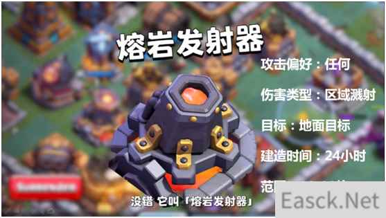 如果在对目标进行攻击前便被击落,野猪飞骑也将继续作为野猪骑士作战。在实际使用中,飞猪还是比较万金油的,推防御,吸引火力,相信将来在联赛中会有不俗的表现。 Q:熔岩发射器是如何体现其防御作用的? A:熔岩发射器是用于压制地面部队防御设施,在发射熔岩团造成伤害的同时,还会在地面留下岩浆区域,配合城墙可以对地面单位造成相当可观的持续伤害,大幅提升了村庄的反击能力。