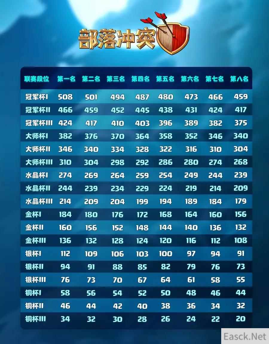 除此以外,联赛奖章的奖励规则也进行了重新设计。更新后,各部落可赢得的奖章数量将取决于该部落在赛季中的表现。每个联赛段位将设置玩家可赢得的联赛奖章数量上限,但该玩家最终可获得的奖章数量将取决于他在赛季中赢得的胜利之星数量。《部落冲突》希望新的机制能鼓励参赛部落发挥出全部实力,争取得到更多奖励! 在更新后,《部落冲突》将在游戏内公布各赛季结束后的排行榜。该排行榜将展示冠军杯联赛I中的部落排名。