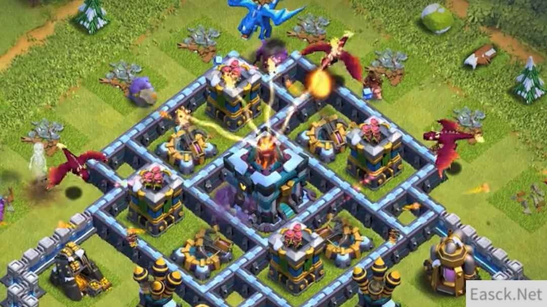 如果你想拥有一个多功能防御建筑, 一定不能错过的武器就是【投石炮】,作为陆空两用型建筑单位,它散开的碎石会产生扇形溅射,对初始目标和后方部队造成额外伤害。