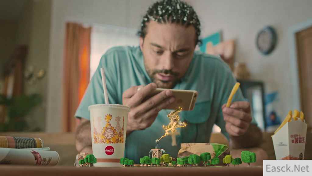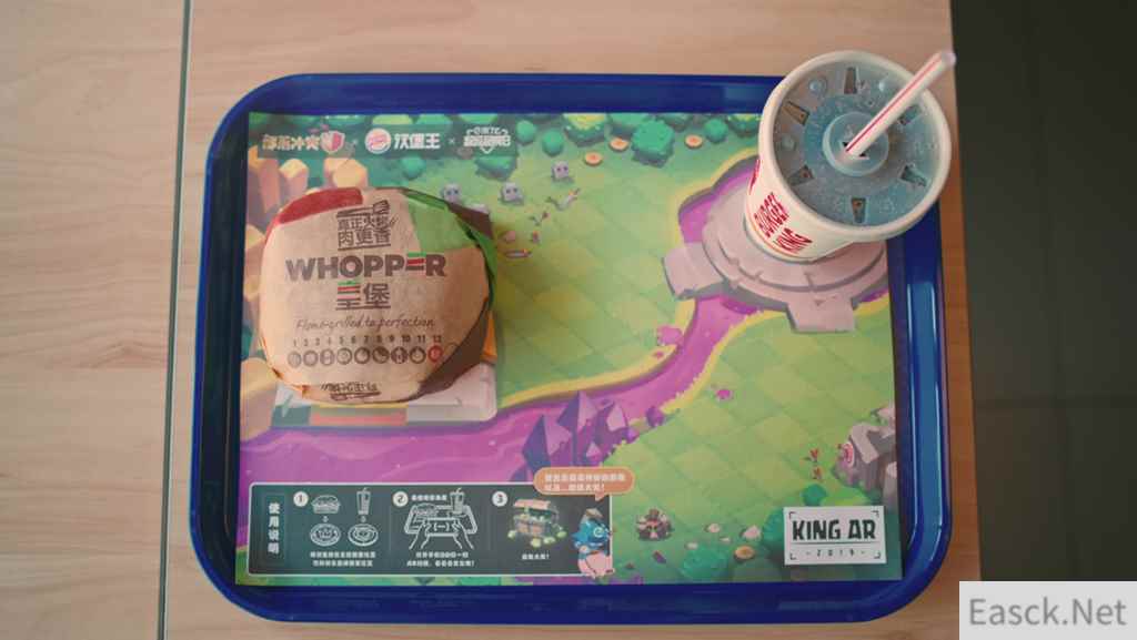无论你是身处汉堡王门店,还是召唤饿了么骑手在家享用美味,拿出手机扫一扫,就可以充分体验由这张AR餐垫创造的小小部落世界,利剑、火球都尽在咫尺眼前,让你在方寸之间目不转睛。