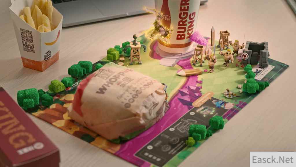 AR技术的联动运用如今已算不上稀奇,关键还是要看它怎么玩。在这场美食与游戏的夏日狂欢中,官方用AR技术将《部落冲突》里的战场搬到了汉堡王的餐桌前。小到一张随餐餐垫,大到快闪店的一墙海报,商厦中的一座快闪基地,这场活动不光是让食物和游戏做联动,而是将用餐过程本身变成了一种乐趣,把一场异业联动玩成了一场互动体验。