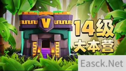 首先本次更新是以丛林为主题的更新,14级大本营的开启直接给玩家带来了海量的全新内容。玩家最关心的就是大本营升级14级的问题,建筑外观上,14级本整体紫金色搭配,并刻有古老的象形图案文字,搭配流淌的墨绿色神秘液体从细节上体现了这次更新大本营的丛林主题。