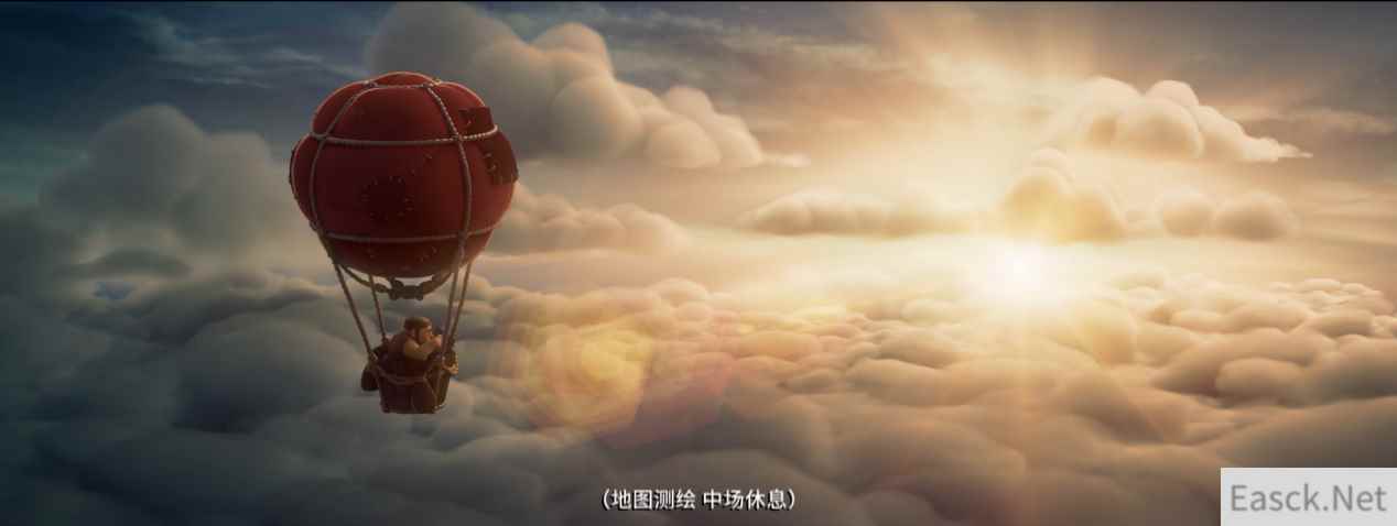 视频开始一个乘坐热气球的绘图师在云层飘荡,随着云层散开映入我们眼帘的是一个充满了盛唐气息的城市。