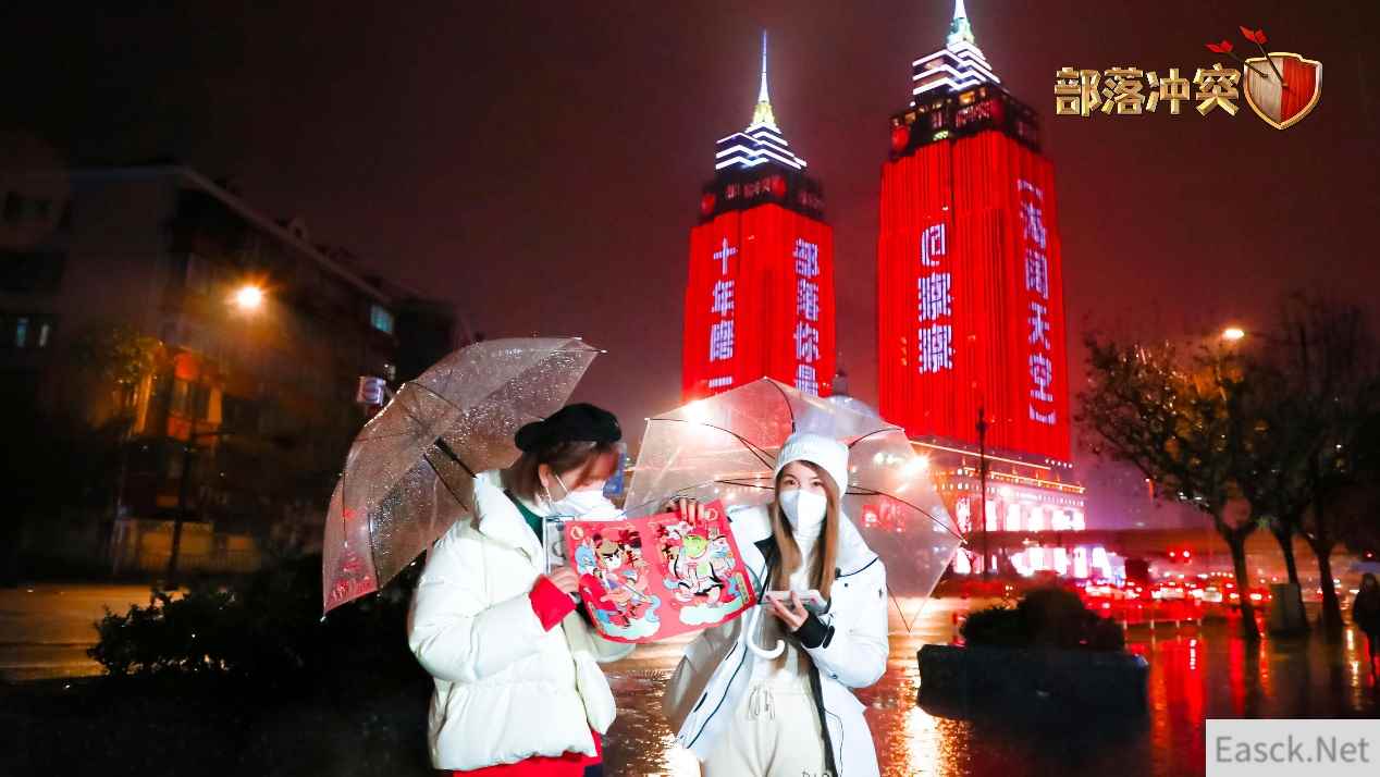 【历时60天的筹备,只为30分钟的闪耀】 上海环球港双子塔买楼投屏并不是什么新鲜事儿,但是大多数是粉丝为爱豆买楼应援。这次《部落冲突》却是霸道“宠粉”,让游戏玩家即部落首领们成为23日晚上最闪耀的星,上海的夜空也是第一次被部落照亮! 因正值春节,投屏企划以及落地实施过程便充满艰辛。欣慰的是官方通过微信公众号和游戏内发公告征集,仅仅7天就收到了众多祝福留言,得到玩家们的大力支持。经过多方筛选,最终甄选出近百条留言,现场路过的行人都能清楚仔细地看到文字内容。