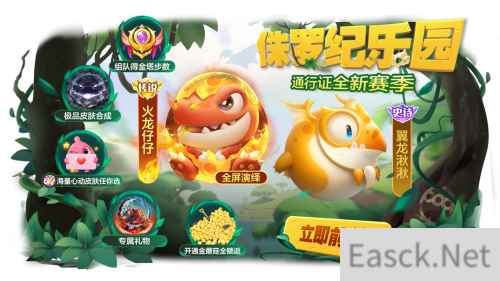 300倍超额礼赠!赛季通行证划算到底 伴随着新赛季的开启,赛季通行证侏罗纪乐园也迎来了全面焕新。现在,你只要开通通行证即可获得史诗团战关键词[翼龙湫湫]&[爱心卡],爱心卡可在新赛季中复制任意自定义皮肤哦。 如果你升级到了豪华通行证,更能直升到80级,并立刻解锁3D传说关键词[火龙仔仔]。 另外告诉大家一个小小福利,此次通行证任务已经全面减负,不需要卖力肝就能快速升级,合成极品关键词[噬星巨兽]哦!