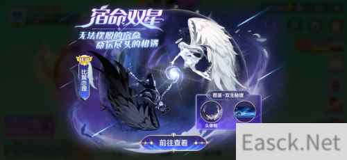 相生相伴为爱而生!传说级“宿命双星”皮肤全新上架 当纯洁的白翼和深邃的黑翼相逢,宿命的齿轮也随之转动。现在,你也可以和“TA”拥有这份特别的浪漫!《球球大作战》推出全新传说级皮肤[宿命双星],其中包括光环[星月之门]、残影[次元暗面]、头饰[混沌之杖]、腰饰[交错磨砺]、孢子[迷你混沌天体]和关键词[比翼恋理]等。身着这一系列皮肤的你,想必也会成为波拉哩星最闪耀的存在!