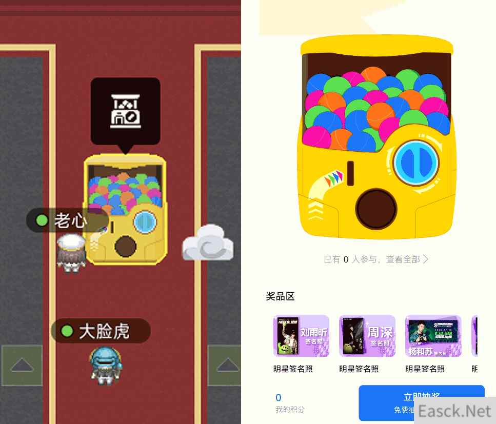 第二大亮点是福利回馈。音乐节期间,官方不仅准备了总额达10万元的现金红包雨,而且还将各种奖品与主题乐园内的场景挂钩,例如限定皮肤、道具等游戏虚拟奖品在舞厅大屏幕两侧获取;明星绝版签名照、游戏黑胶唱片等实物奖励则通过主题乐园内的扭蛋机抽取;这种打通虚拟和现实的设计,确实有一些「元宇宙」的味道。
