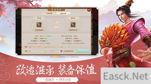 装备系统大幅改进,一次改造可永久继承 新版本将推出装备改造继承系统,道友们可永久继承自己精心打造的装备,装备保值将不再是空谈!继承改造的过程十分简单,只需要打开界面,选定自己接下来想要使用的、功能齐全的装备作为主装备,想要被继承的高改装备作为副装备,再花费一定量的元宝和金钱,就可以进行改造继承的操作。