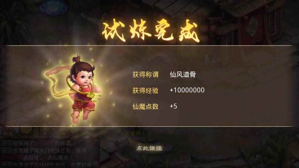 全新试炼任务,突破元婴等级上限 当道友们历经重重险境,完成之前领取的任务之后,便可以获得5点可分配的仙魔点数。利用这些点数,就可以并元婴(血婴)的状态突破150级等级上限,凭借自己的实力逆天改命,开启更高等级的天劫。