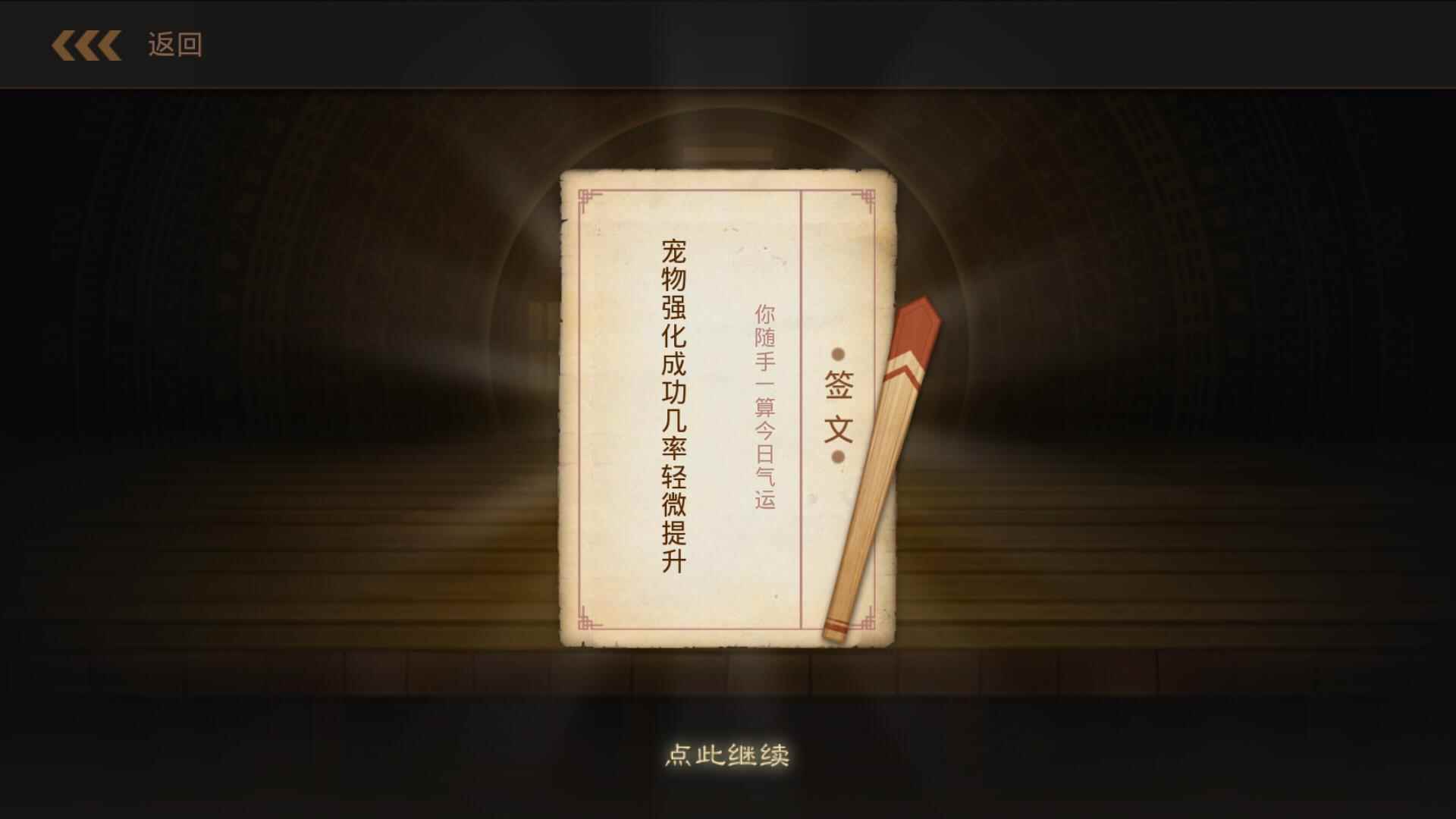 神算占卜 知晓今日运程 每天在游戏里都要参与各种活动,还会对装备进行改造,所有涉及到概率的问题,都会让人不得不多关心一下自己的运势。《问道》手游新上线的神算子占卜玩法,道友们每天可去找天墉城里的神算子算上一卦,了解想要知道的运势,神算子的卦分为如意签,幸运签、万福签,如意签对应活动奖励事件,以日常任务数值各类奖励增加为主,如:师门经验翻倍、帮派任务有几率掉落2块女娲、通天令牌掉落几率增加等;幸运签对应属性强化事件,以装备打造系统各类几率提升为主,如:改造成功率提升、炼化稀有属性提升等;万福签对应其他随机事件,以各类随机触发几率提升为主,如:摆摊免费、签到奖励翻倍、天地星点名几率翻倍等。道友可选自己感兴趣的进行占卜,增加相应的幸运事件概率。