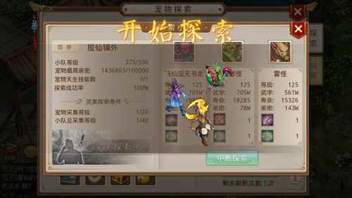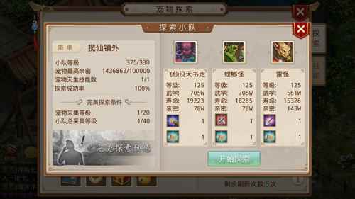 地图的探索难度与消耗时长直接相关,分别为困难(6小时)、中等(4小时)、简单(2小时)。每种难度的地图对所派遣的宠物也会有不同要求,可能需要羽化、也可能需要天书、天技等等,满足条件越多,探索的成功率就越高(编好小队以后要求会显示在左侧)。