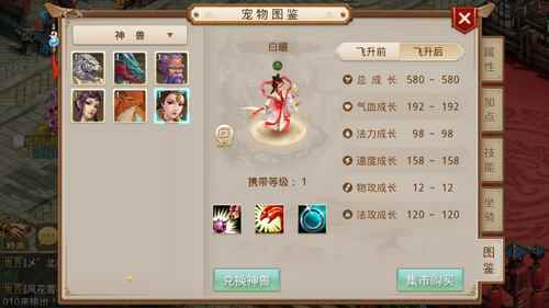 白矖不仅颜值出众,属性也不弱,是个在体敏两端都非常出色的宠物。飞升后的气血成长高达192,速度也达到了158。