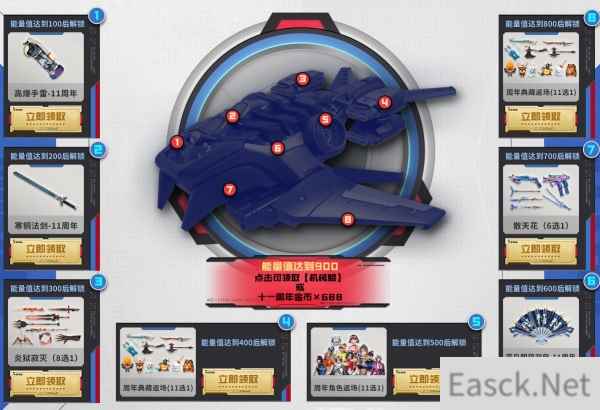 每周完成活跃任务,积累能量值,满900即可领取机械鲲,可以让11周年青铜纪元套装完成机械飞升,变为智械帝国套装!