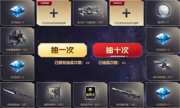 在装置枪变异、小达古、虚空晶格·魔网-鹊桥仙等道具中选择一款加入自选奖池道具进行抽取。