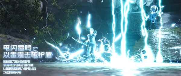 裂隙雷刃:灌注了雷鸣狼王神力造型奇特的阔刃剑,剑身上能观测到细小的雷电闪光,在雷鸣峡谷能驱雷掣电,召唤闪电攻击并给附近玩家加感电BUFF。其释放的雷电技能在雷鸣峡谷,将与雷霆神剑的闪电有相同功效。