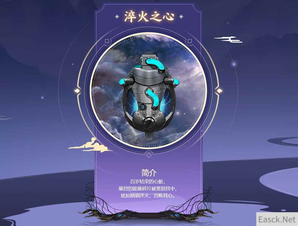它是以枯木鹿兽的角骨为斧头,枯木做柄身而的硬斧,有劈破混沌、斩碎时空的能力,看上去野蛮值和破坏力直线拉满,期待上手之后的感觉。 「淬火之心」