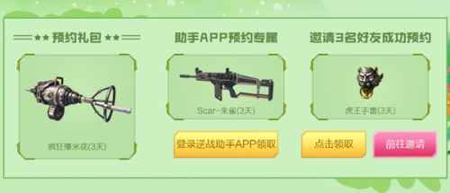 4月4日暖春踏青活动:点击进入 即日起前往逆战官网活动中心,预约暖春踏青活动,即可获得预约好礼疯狂爆米花(3天);登陆逆战助手APP预约可获得SCAR-朱雀(3天);邀请3名好友成功预约可获得虎王手雷(3天)。