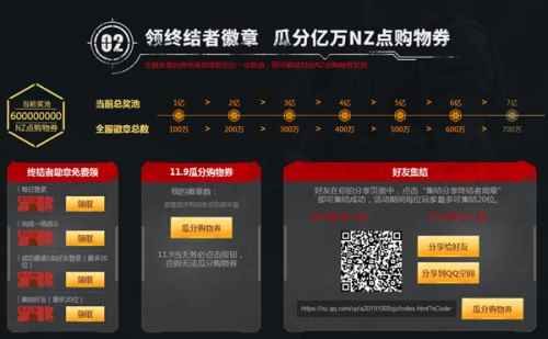 终结者徽章即将溢出 坐等瓜分亿万NZ点购物券 通过玩家们团结一致在逆世界的奋战,领终结者徽章瓜分亿万NZ点购物券行动中,终结者徽章收集总数已突破600万大关,终极大奖7亿NZ点购物券已触手可及,想必没有人会忘记最关键的开奖日-11.9,届时你的NZ点购物券会爆仓吧!