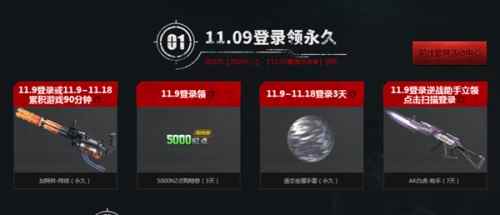 11.09登录领永久 登录领永久一直是广大逆战玩家最喜欢的环节,在本次活动中玩家只需在11月9日登录逆战游戏客户端,即可获得新品永久——加特林-终结、5000NZ点购物券(3天);登录逆战助手APP即可获得AK白虎-助手(7天);11月9日-11月18日累计登录游戏3天即可获得全新永久道具——液态金属手雷、累计游戏时长90分钟可补领加特林-终结(永久)。达到领取条件的玩家可在游戏内【活动中心】-【11.09最强终结者】领取。