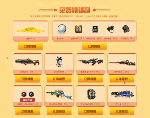 十大免费福利领完为止 本次活动特设十大免费福利,深受广大玩家喜爱的神器纪元之辰、世代之影、幽冥毒皇-致命、圣光裁决-骤晴、灭世者以及各种防具、宠物、道具、金秋币统统可以免费领取(金秋币可用于本次活动中兑换永久道具),活动期间每日登陆游戏即可领取一个奖励,不可重复领取,领完为止。