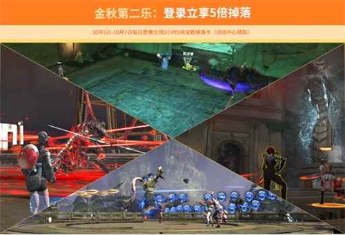 金秋第二乐:登录立享5倍掉落 相信很多玩家都有收集癖,特别是面对猎场里那些炫酷的掉落,心心念念就想着得到,虽然也有不少保毕业活动,但选项毕竟是有限制的,而且开箱金光更受玩家们的喜爱,10月1日-10月7日期间每日登陆游戏,即可领取两小时5倍宝箱掉落卡一张,小伙伴们千万不要错过哦!