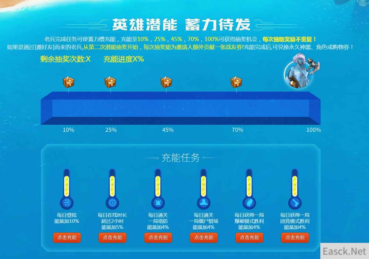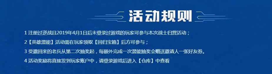 《逆战》盛夏黎明 战士归营 活动时间:4月28日~5月17日 活动地址:点击进入 活动内容: 1、英雄潜能 蓄力待发