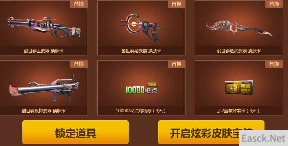 累积开启道具盒 开启炫彩神器皮肤 活动期间,您可以在活动页面查看炫彩皮肤宝箱,并自选替换其中的换肤卡道具,确认后锁定(限锁定10次)。 累计开启道具盒达到对应次数,即可开启1次炫彩皮肤宝箱并获得一个其中的随机换肤卡,最多可开启6次,获得下列所有6个换肤卡。 换肤卡为唯一道具,请不要选择游戏内已拥有的换肤卡!