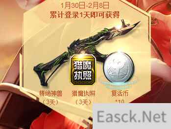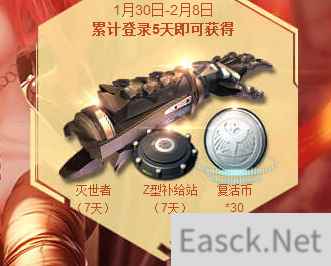 三、灭世寒假礼 1月30日-2月8日,累积登录5天即可获得