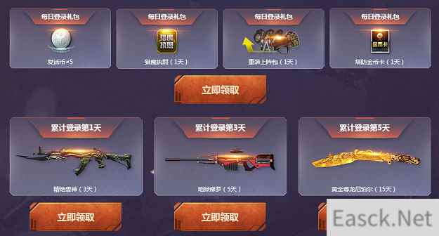二、登录7日,必得黄金AK永久+极品猎场神器 新兵累计登录可即可领取超级大礼,每日登录可领每日登录礼包