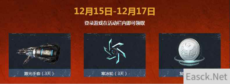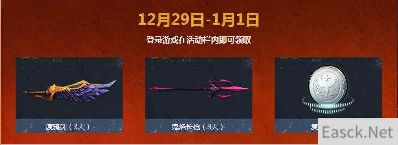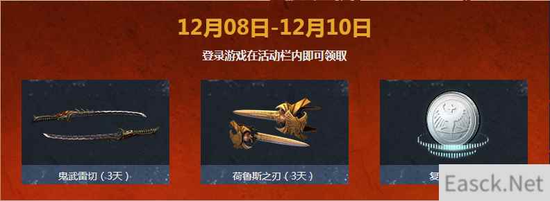 刀锋无双 征程再起 活动时间:2017年12月08日-2018年1月1日 活动地址:http://nz.qq.com/cp/a20171127dfws/index.htm?e_code=376028 一、登陆游戏在活动栏内即可领取 1、12月08日-12月10日
