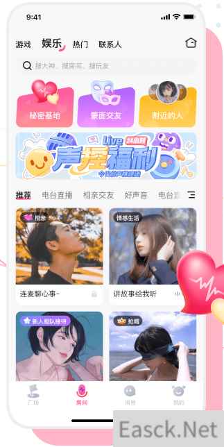 皮皮蟹语音交友 皮皮蟹致力为用户提供不卡、不掉、不延时的优质语音功能,给用户带来极佳的语音开黑体验,同时推出聊天交友、互动游戏、上麦K歌等多元玩法。刷完疲劳的勇士不妨到热门语音房间上麦聊天,萌萌的妹子等待你的光临,让脱单更加轻松。