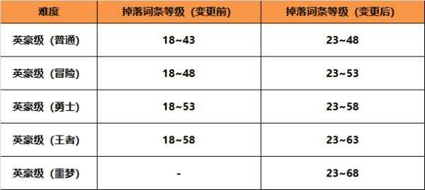 (英豪模式掉落词条等级提升5级) 各大副本的怪物血量得到不同程度的下调,勇士们的冒险之旅更加轻松愉快!