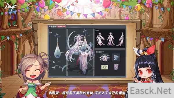 值得一提的是,在DNF外观设计大赛中脱颖而出的十五套高人气作品也在十四周年生日会中亮相,送来了一份特别的礼物。以中国文化之美为主题,运用大量国风元素,在设计巧思和古风余韵中寻找平衡,都是十分出色的作品。其中,获得选票最多且荣获全场闪光创意奖的作品-跨凤乘鸾·巫女更是惊艳。以“萧史弄玉”的典故为灵感,用琵琶和白鸽替代玉箫和鸾凤,是意境和意识兼具的佳作。获得闪光创意奖的作品还将加入游戏,成为勇士们新的时装,敬请期待!