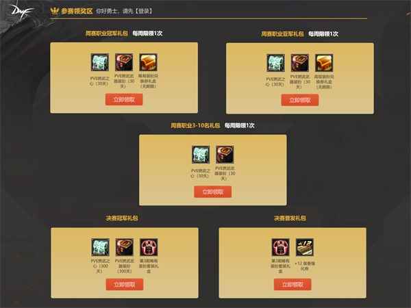 奖品豪华赛程精彩 领取你的专属赛事福利 此次“命运的抉择”全职业狂欢赛采用周赛和线上决赛的比赛赛制。9月14日-10月4日,成功报名并使用报名角色通关“命运的抉择“副本的勇士,可以按照大赛指定的方式进行视频投稿,参与周赛的角逐。官方将对每个职业前10名的选手进行排行榜展示,每周每个职业第一名可晋级第四周线上决赛。线上决赛将在10月5日-10月6日进行,经过层层筛选的职业达人将带来最震撼的视觉盛宴。奖励方面,每周职业冠军、亚军以及3-10名的勇士可以获得相应奖励,奖品包括PVE燃武之心(30天)、PVE燃武武器装扮(30天)、高级装扮兑换券礼盒(无期限)、稀有装扮兑换券礼盒(无期限)等。决赛冠军可以获得PVE燃武之心(300天)、PVE燃武武器装扮(300天)、第3期稀有装扮套装礼盒等稀缺奖励,每位单职业冠军还可以获得5000元的冠军奖金,不容错过! 值得一提的是,勇士们在关注“命运的抉择”全职业狂欢赛的同时,还可以完成每日任务,参与幸运夺宝,有机会获得灿烂的徽章神秘礼盒、梦想白金徽章礼盒、第3期稀有装扮套装礼盒等神秘大礼,共享荣耀时刻。