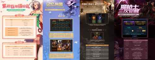 福利轻松领 版本更新有惊喜 在版本更新、魔枪士三觉上线的同时,各色福利活动也同步上线,为广大勇士带来新一轮的福利回馈。4月22日-5月20日,勇士们每天完成1张年代记拼图,即可获得20个太阳的印章,用于兑换日月赞歌中的豪华奖励。与此同时,累积在线得好礼活动同步启动,活动时间内勇士每天累积在线30、60、90、120分钟即可获得每日奖励,累积领取120分钟奖励5次、10次、15次、20次还可以获得累计奖励,奖品包括时间引导石礼盒、装备净化套装礼盒、装备提升礼盒、稀有克隆装扮变更券等。4月22日-6月3日,勇士还可以通过挑战骑士团的试炼获得太阳的印章,用于解锁灿烂的徽章自选礼盒、Lv100史诗装备设计图、Lv100传说装备自选礼盒等重磅奖励。4月22日-5月20日,勇士们还可以通过完成魔枪士的等级挑战以及属性提升任务,获得Lv100史诗袖珍罐、本职业稀有神秘符文礼盒、魔枪士三觉武器装扮礼盒等奖励。