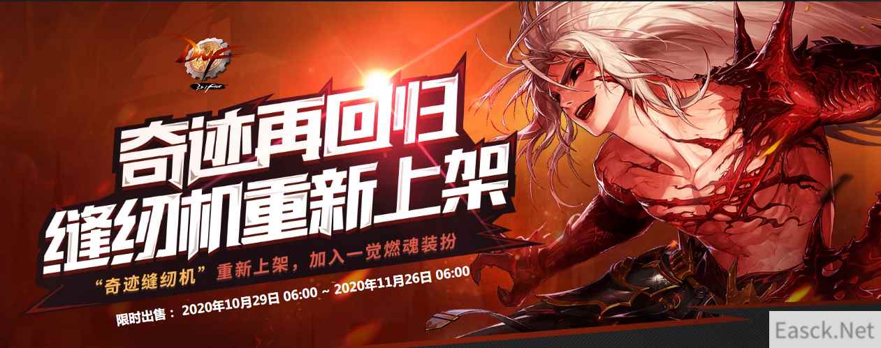【DNF2020年活动大全 】 奇迹再回归缝纫机重新上架活动 活动时间:10月29日~11月26日 活动网址:点击查看 活动奖励:
