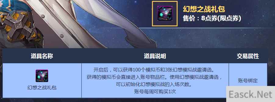 DNF开启了幻想之战礼包,活动期间玩家可以在商城购买幻想之战礼包,打开后可以获得模拟战和幻想模拟战邀请函,下面就给大家带来DNF幻想之战礼包活动网址。