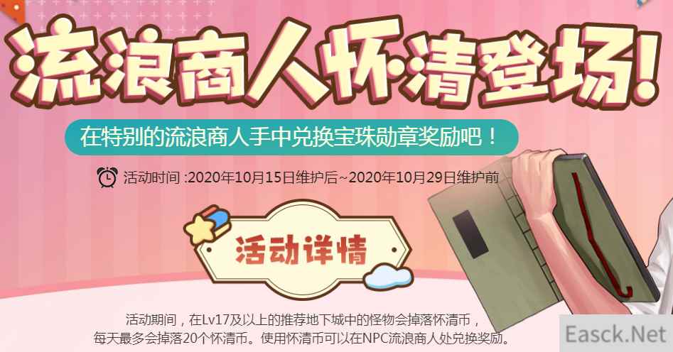 【DNF2020年活动大全 】 流浪商人怀清登场活动 活动时间:10月15日~10月29日 活动网址:点击查看 活动奖励: