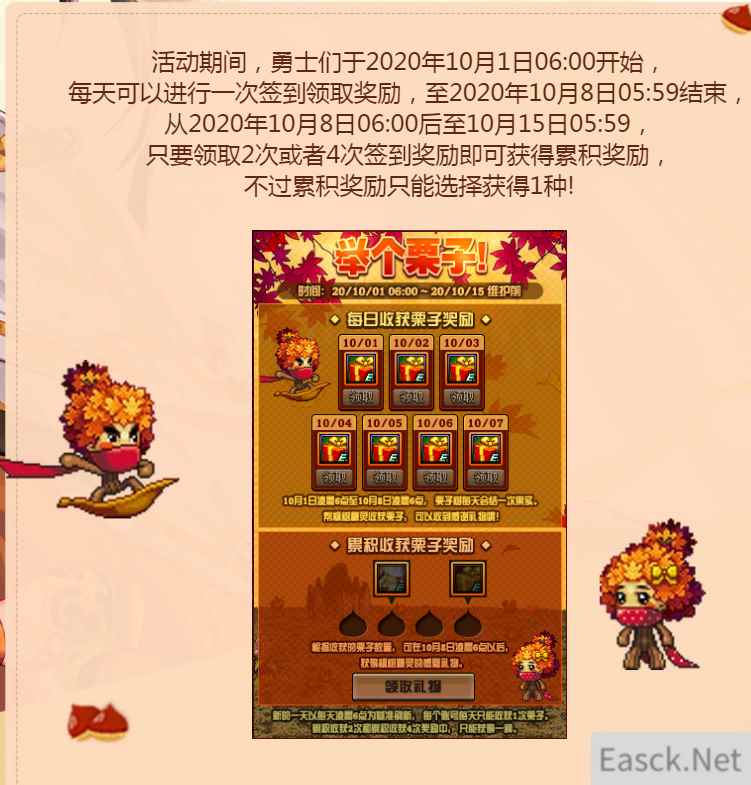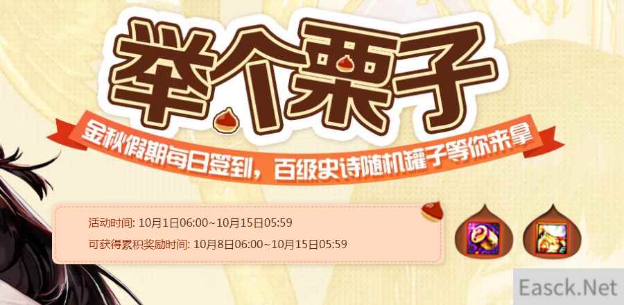 【DNF2020年活动大全 】 举个栗子活动 活动时间:10月1日~10月15日 活动网址:点击查看 活动奖励:
