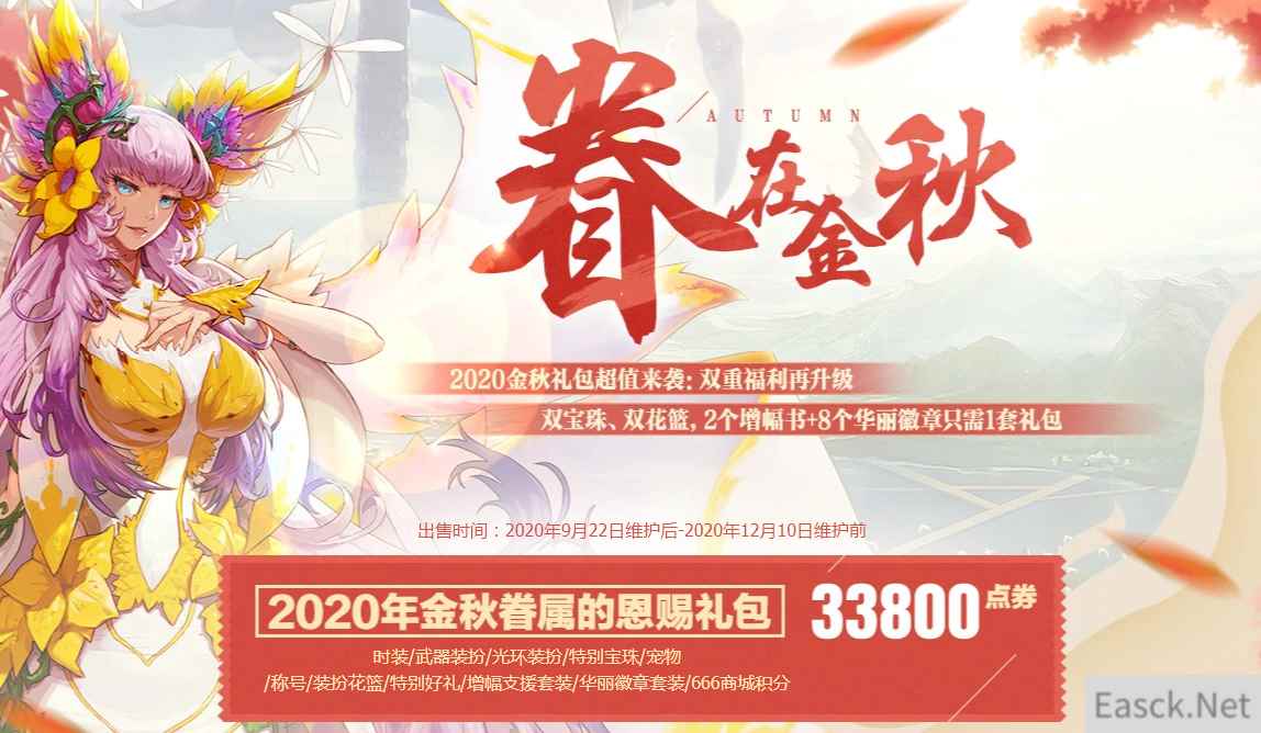 【DNF2020年活动大全 】 眷在金秋活动 活动时间:9月22日~12月10日 活动网址:点击查看 活动奖励: