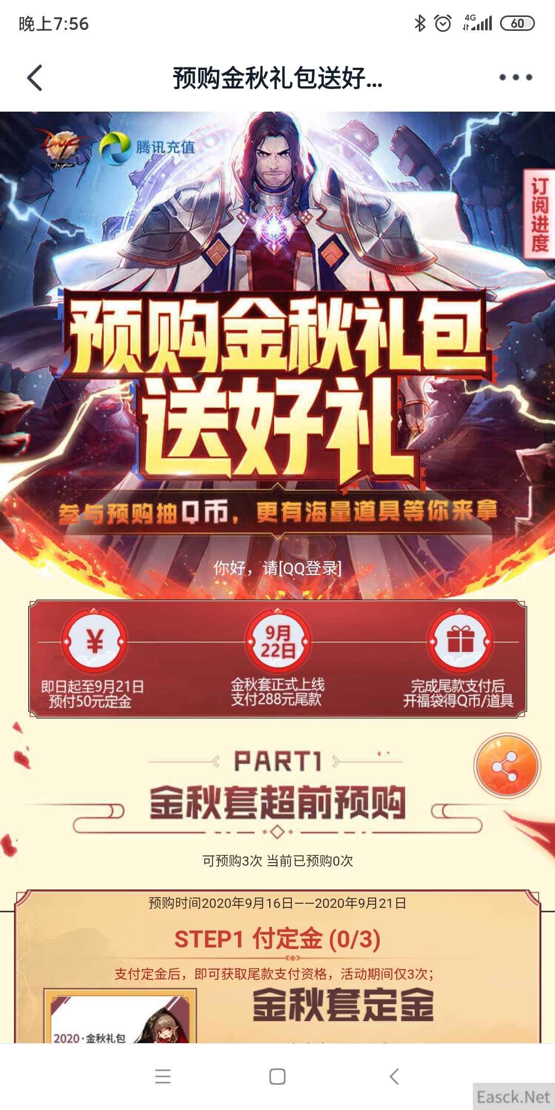 DNF开启了预购金秋礼包送好礼活动,现在支付金秋套定金,等上线后支付金秋套尾款就可以领取奖励,最多可以获得8888Q币,下面就给大家带来DNF预购金秋礼包送好礼活动网址。