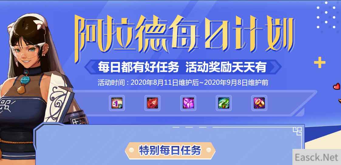【DNF2020年活动大全 】 DNF阿拉德每日计划活动 活动时间:8月11日~9月8日 活动网址:点击查看 活动奖励: