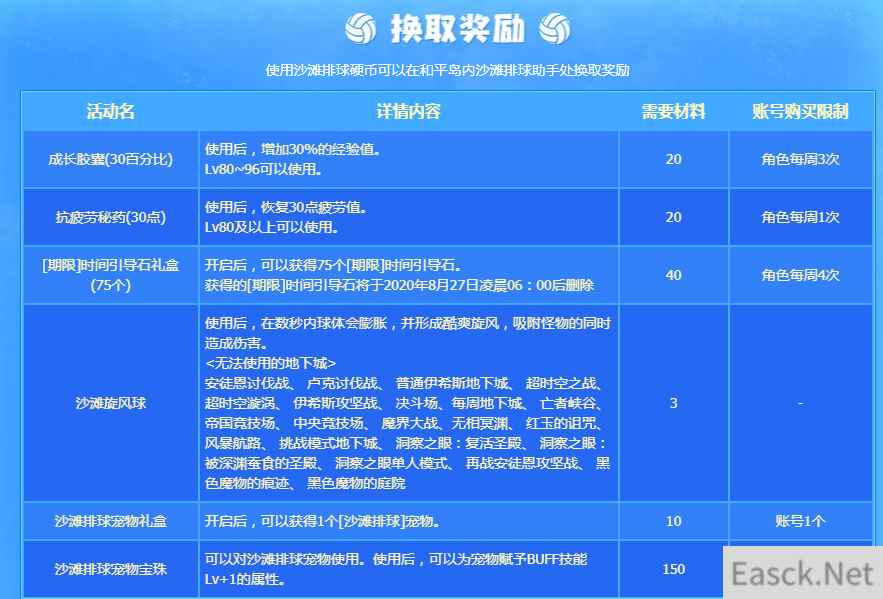 【DNF2020年活动大全 】 DNF沙滩排球大作战活动 活动时间:20.07.30~20.08.25 活动网址:点击查看 活动奖励: