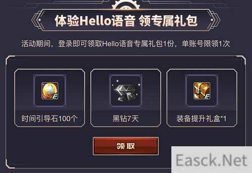 此外,Hello语音还为各位勇士们备上了好礼。只要登录Hello语音打开DNF心悦闪光杯活动页面,就能免费领取专属礼包,时间引导石100个、黑钻7天、装备提升礼盒1个免费拿。更有在线任务和累计在线任务,让您轻松拿奖励。