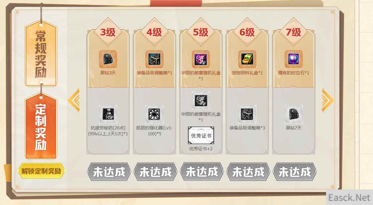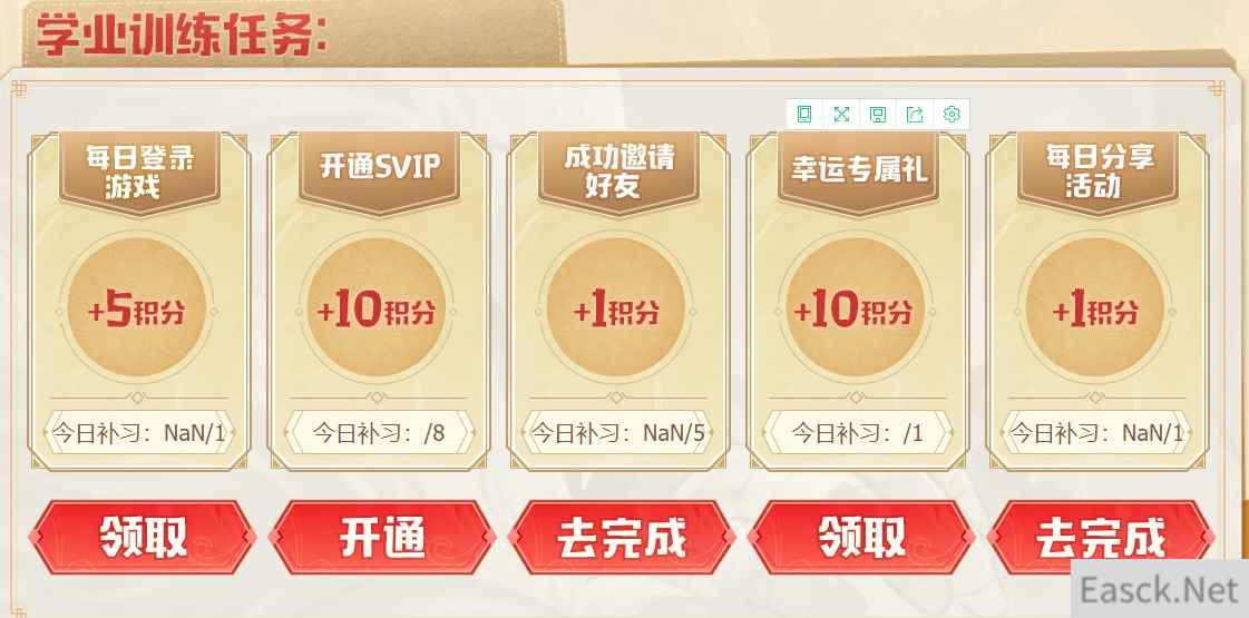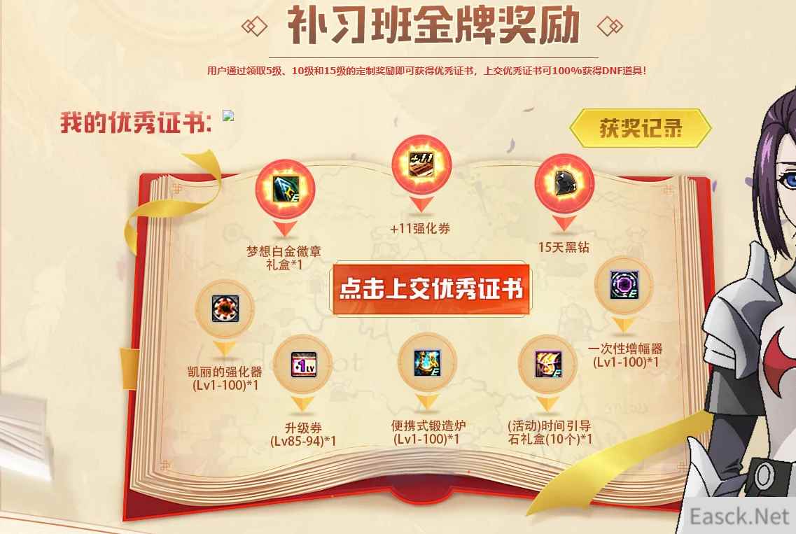 活动规则: 积分等级规则: 1、 用户通过完成相应的学业任务可获得相应的学习积分,提升补习进度; 2、 补习班一共15级。解锁等级可领取相应的等级礼包; 3、 新用户进入默认1级。可领取1级常规奖励; 4、 用户每天登陆游戏即可在本活动获得5积分(登陆游戏切换角色/切换频道方可记录成功); 5、 用户在本活动开通SVIP即可获得10积分,单Q限开8次,满级后积分不会再增加,但SVIP时长会正常到账; 6、 用户在本活动每成功邀请1个好友成功参与活动,可获得1积分,同一好友无法叠加奖励。用户每日最多邀请成功5位好友; 7、 我们将随机抽取幸运用户,可获得幸运专属礼10积分,单Q限领1次; 8、 用户每日可分享本活动给好友,可获得1积分,单Q日限1次; 定制奖励规则: 1、 用户仅可通过点击【解锁定制奖励】按钮开通SVIP,可解锁定制奖励; 2、 通过完成学业训练任务获取相应的学习积分,提升补习进度获取奖励; 3、 用户达到5级、10级、15级可获得优秀证书,上交优秀证书可随机获得DNF奖励。 |