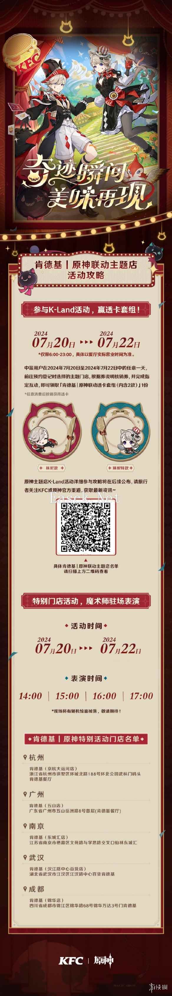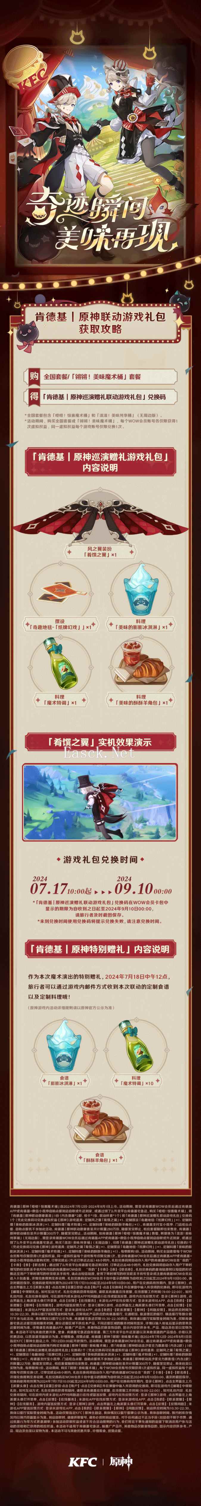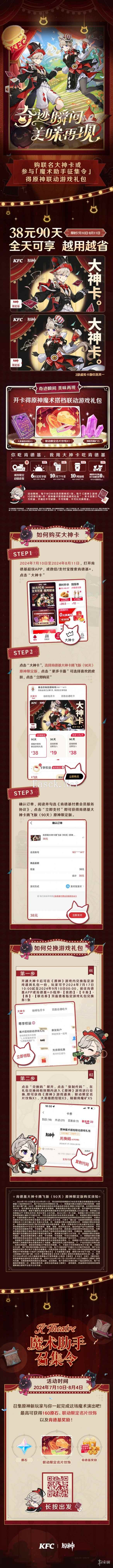 《原神》官方在昨晚的4.8版本前瞻直播中宣布将与肯德基进行联动,官方今天公开了本次联动的详细情报。本次联动自7月12日正式开启,将持续到8月1日。