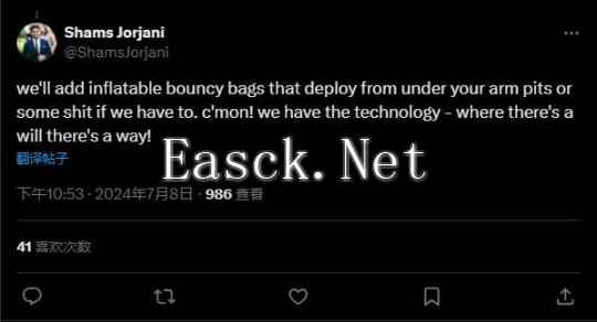 而Arrowhead现任CEO Shams Jorjani完全理解玩家的诉求,在其推特上询问是否可以保留这个“机制”。不过CEO很快又给出了新的建议:“如果有必要,我们会添加可从你的腋下展开的安全气囊或类似的东西。来吧!我们有技术——有志者事竟成!”