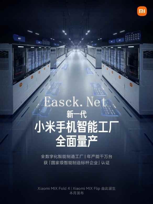 小米昌平手机工厂已落成启用,这是新一代小米手机智能工厂,投资24亿元,建筑面积81000平米,旗舰手机年产量1000万台,小米MIX Fold4与MIX Flip都是由该工厂生产。